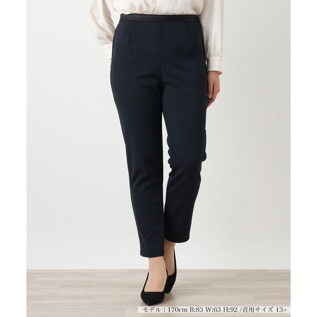 脚のラインをすっきりと美しく見せてくれるスリムパンツ。抜群のストレッチ性で、動きやすさと快適な穿き心地を実現しました。ウエストはゴム仕様なので、長時間の着用でも窮屈感なくお過ごしいただけます。チュニックやワンピースとのレイヤードスタイルにも最適。アクティブな日からリラックスしたい日まで、毎日穿きたくなる一本です。