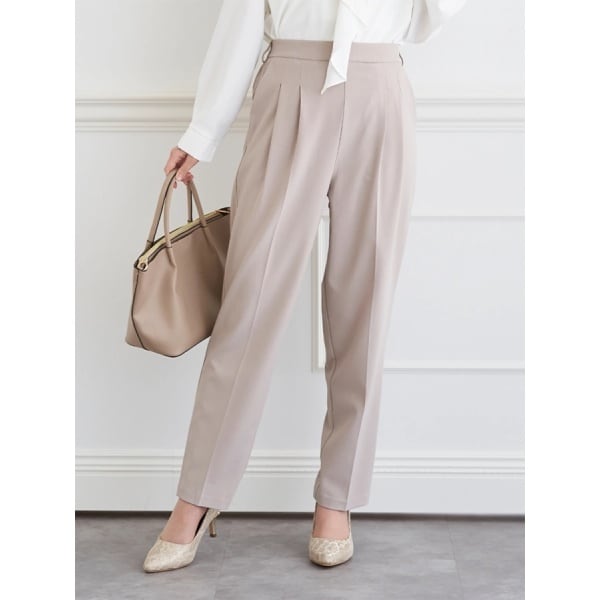 裾に向かって細くなるテーパードシルエットが、美しい脚のラインを演出します。