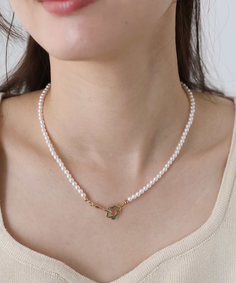 フラワーモチーフパールネックレス