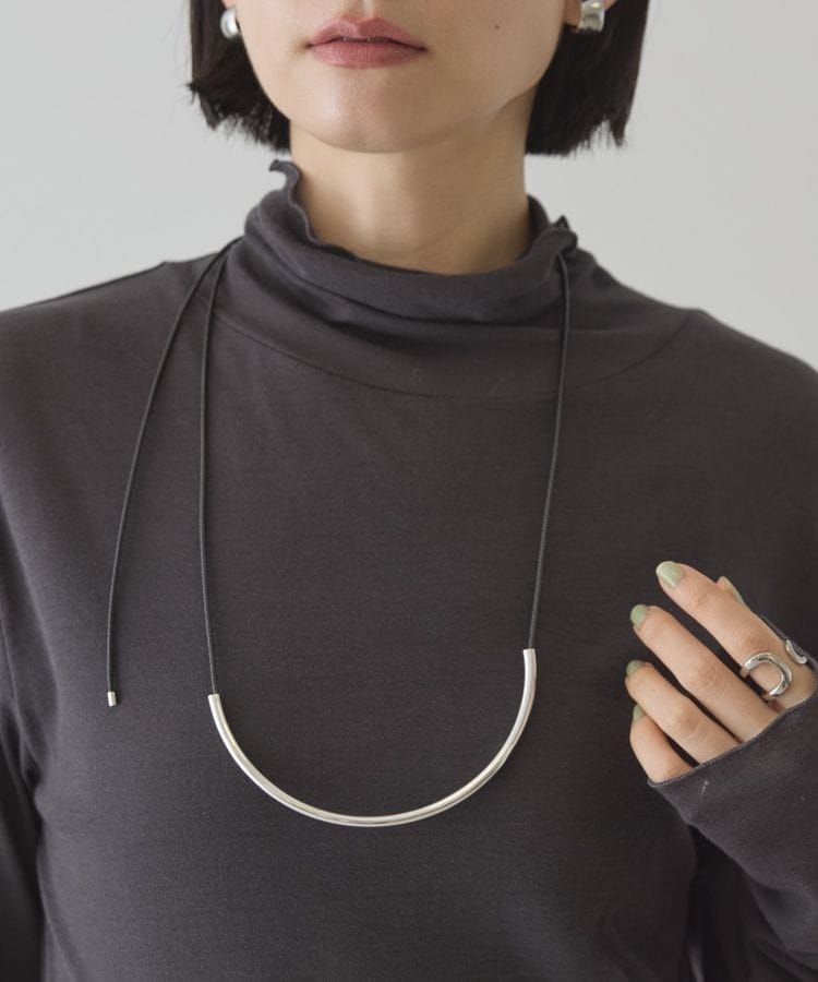 無駄を省いたデザインの中に、さりげない個性を感じさせるネックレス。ハーフパイプの緩やかなカーブが光を受けて美しく、顔まわりを明るく見せてくれます。主張しすぎないデザインなので、デイリー使いはもちろん、きちんと感が欲しいシーンにも取り入れやすいです。コード仕様で肌なじみが良く、軽やかな着用感が続きます。長さを自由に調整できるため、首元に沿わせたり、少し下げて抜け感を出したりとアレンジも楽しめます。シンプルなトップスに合わせるだけで、コーディネート全体が引き締まり、洗練された印象に仕上がります。アクセサリー選びに迷った時にも頼れる存在で、季節を問わず活躍します。※モデル着用画像は、光の当たり具合で色味が違って見える場合がございます。※お使いのモニター環境によって商品の色味が違って見える場合がございます。