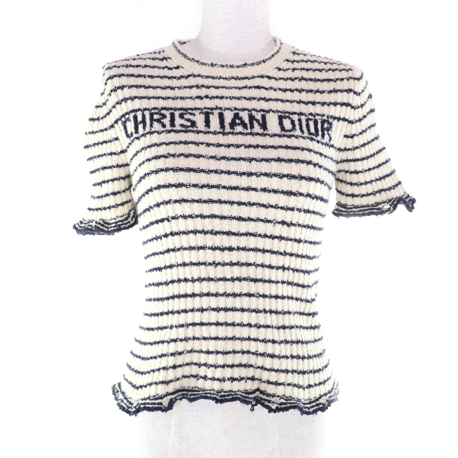 極美品☆Christian Dior クリスチャンディオール 144V50AM350 JA DIOR PARIS クロップド丈 ボンバー ジャケット ネイビー ホワイト 44 イタリア製 正規品 レディース【中古】