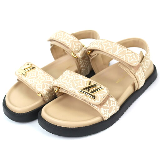 美品☆LOUIS VUITTON ルイヴィトン モノグラムデニム エスパドリーユ フラットシューズ スリッポン インディゴ 36 イタリア製 レディース【中古】