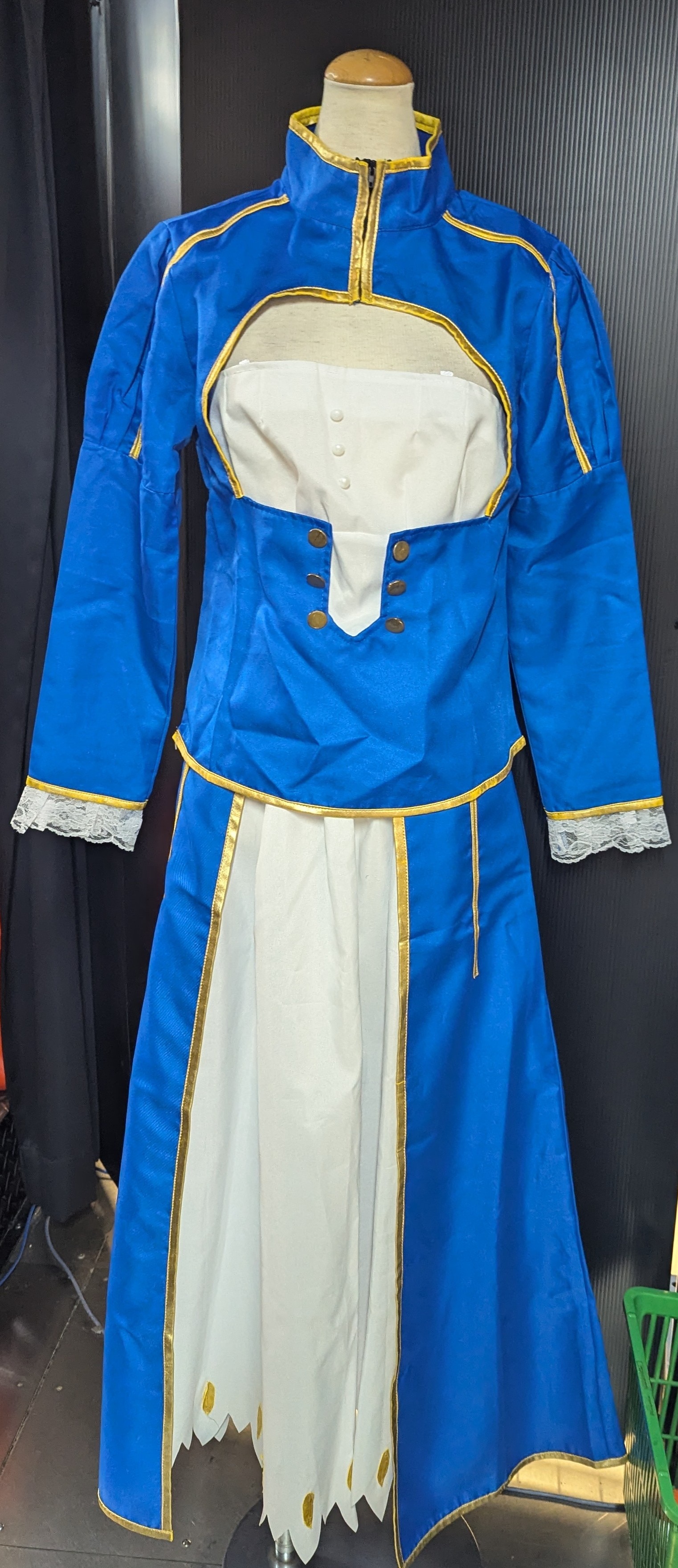 状態 :ドレスパーツ個人製・糊跡あり、ドレス汚れ、全体金ラインハゲあり、ウィッグ崩れ有り (状態:6) 製作 : サークル製(一部個人製) サイズ : 女性Lサイズ(日本標準サイズ/サイズ詳細はお問い合わせ下さい) セット内容 :トップス、ドレス、腰布、ドレスパーツ(青)、紐、ウィッグ ※セット内容以外の物は含まれません。
