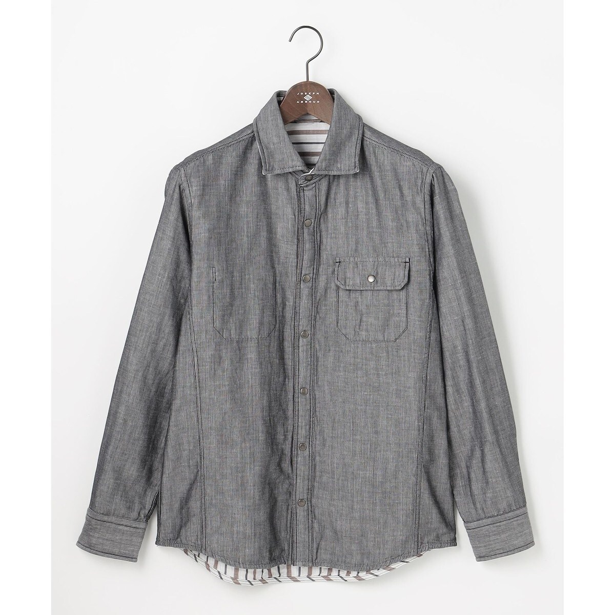 1.1枚で2倍楽しめるリバーシブル仕様表側は無地ライクなシャンブレー、裏側はストライプ柄と、全く異なる表情を持たせました。その日の気分やコーディネートに合わせて使い分けが可能です。