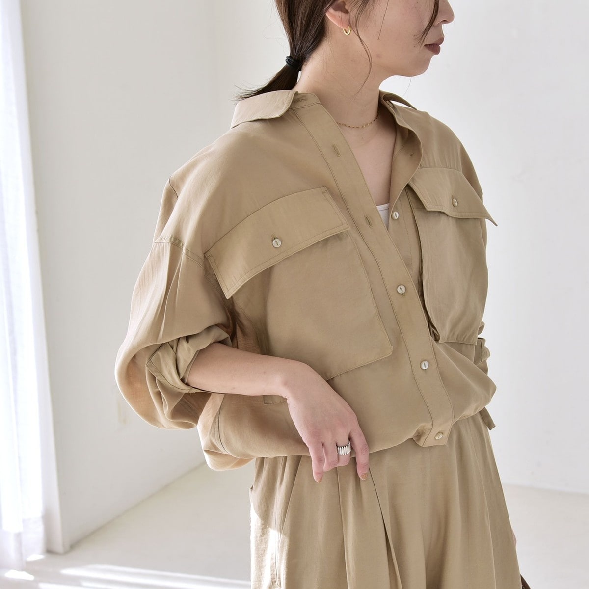 quaranciel:〈洗濯機可能〉ポケット ドロスト スキッパー プルオーバー シャツ