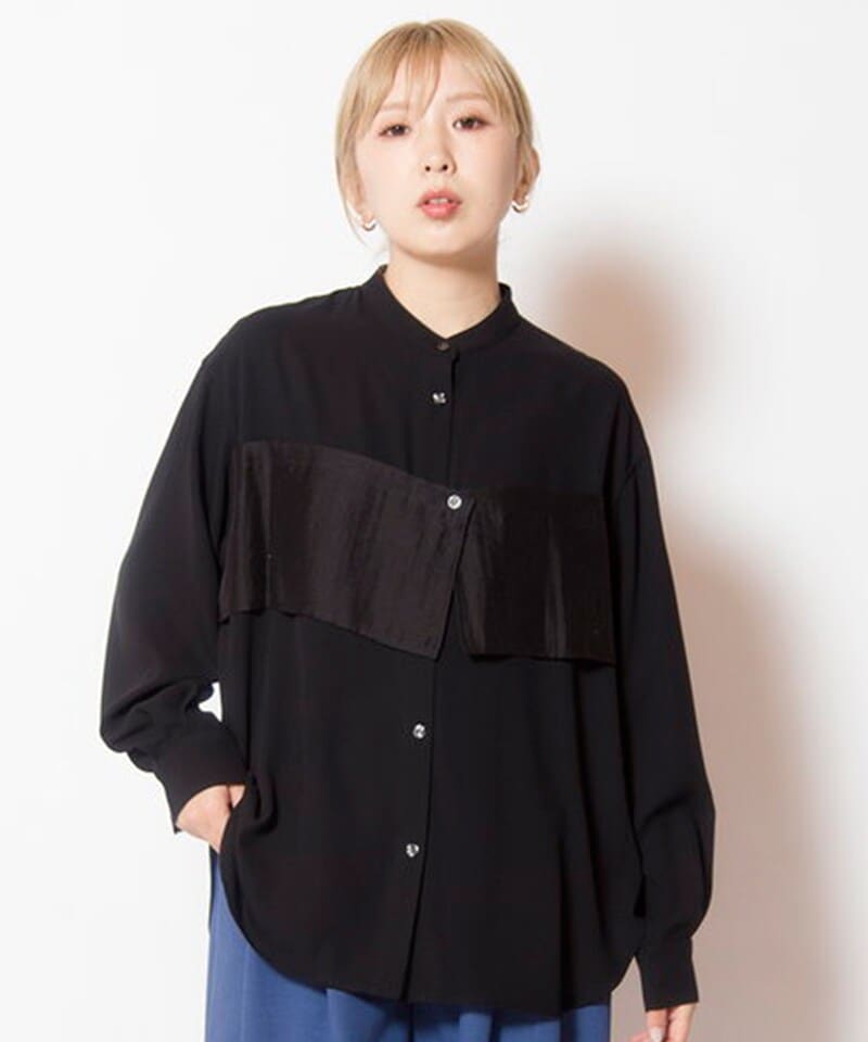 ビスチェを思わせる華奢なレイヤードが、端正なバンドカラーシャツに女性らしいニュアンスをプラス。