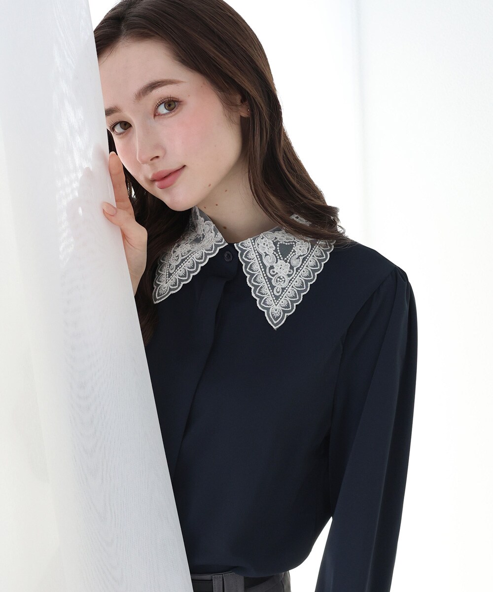 エレガントなレース襟が大人かわいいドッキングブラウス