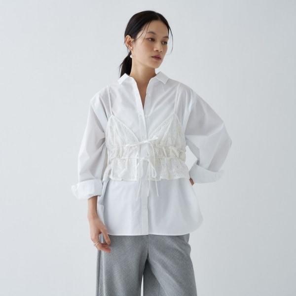 ホワイト レース付きキャミソール 無地 シンプル ナチュラル 透け感