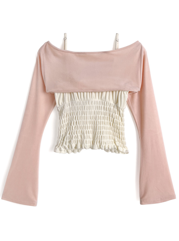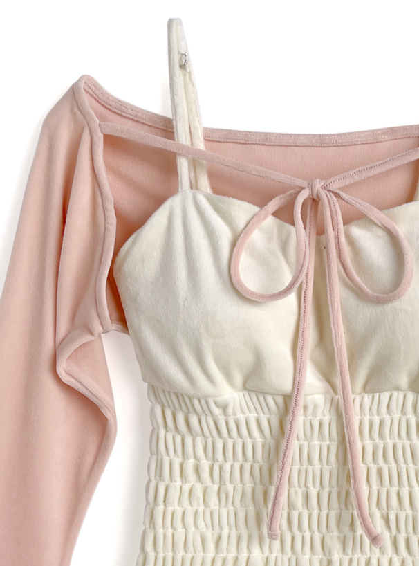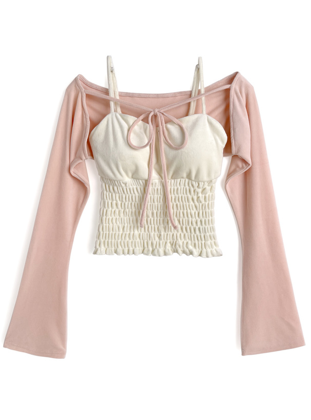 しっとりとしたベロア生地で仕上げた、ボレロとキャミソールのセット。