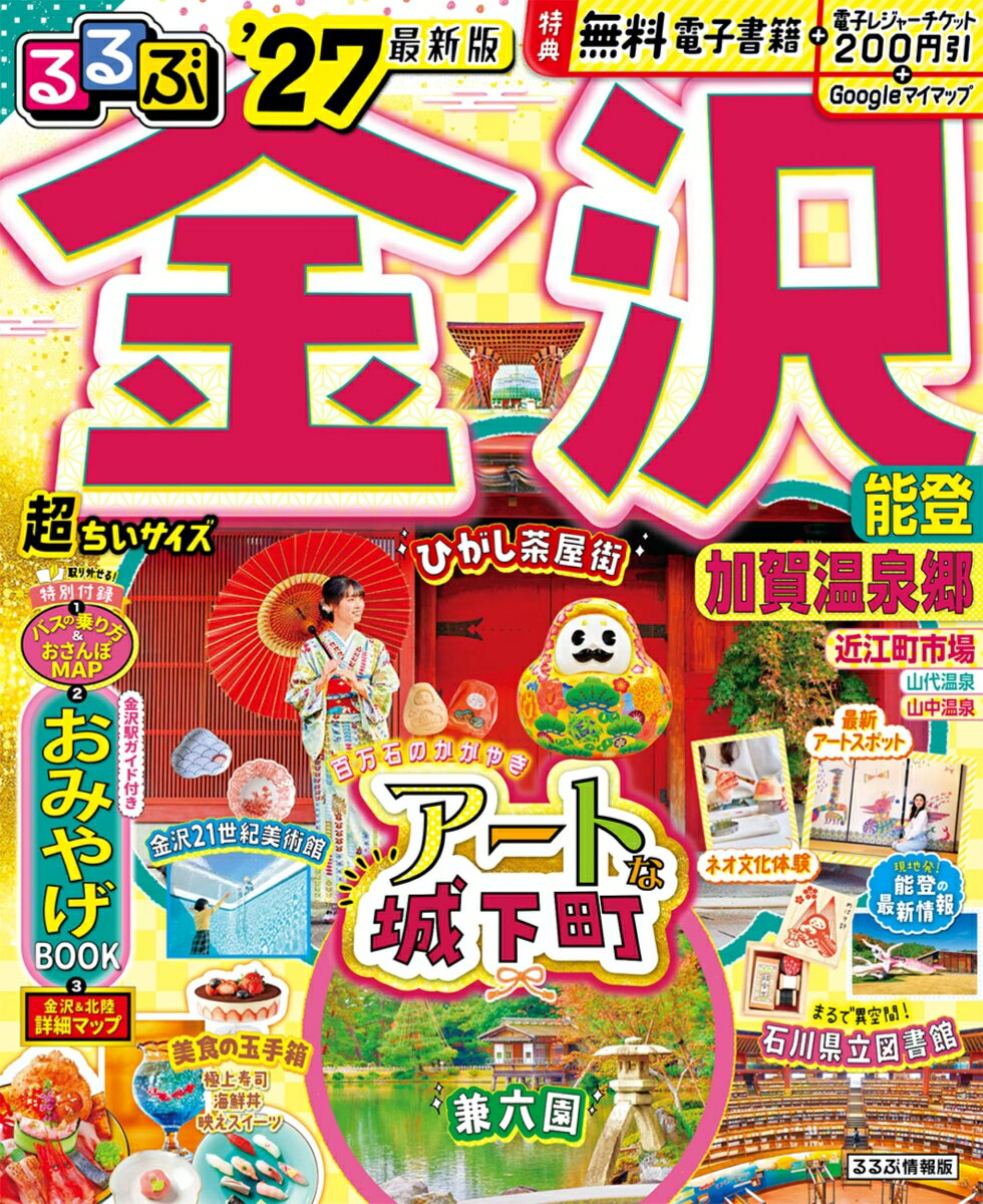 ◎スマホやタブレットで使える便利な電子書籍付き◎電子レジャーチケット「200円クーポン」でお得旅◎大きくて見やすいサイズ(通常版/25.7×21cm)と、持ち運びに便利な「超ちいサイズ」(18×14.7cm)の2つのサイズ展開!こちらは「超ちいサイズ」の商品ページです。ひがし茶屋街、金沢21世紀美術館、兼六園など定番のスポットに新オープン情報、きときと海鮮や映えるスイーツなどの絶品グルメも! これ一冊で最旬の金沢を満喫!<主な特集内容>【巻頭特集1】 最初に確認!金沢はやわかり・金沢・能登・加賀温泉郷ってこんなところ・モデルコース・ニュース&トピックス【巻頭特集2】 The金沢 キーワード55つのキーワードで、「これぞ、金沢」をご紹介。【巻頭特集3】 金沢 美食の玉手箱・近江町市場の海鮮丼・回転寿司・極上寿司・王道ソウルフード・金沢おでん・加賀料理・金沢のパン・海鮮居酒屋・映えスイーツ・老舗プロデュースの和カフェetc.【エリア特集】・ひがし茶屋街・金沢21世紀美術館・兼六園、金沢城公園・能登・加賀温泉郷etc.上記のほか、各エリアの名物グルメ、注目宿情報も満載です。【特別付録1】 大判地図 金沢バスのかしこい乗り方ガイド&金沢おさんぽマップ【特別付録2】 金沢おみやげBOOK【特別付録3】金沢&北陸 旅MAP【掲載エリア】 石川、金沢、ひがし茶屋街、金沢21世紀美術館、兼六園、主計町茶屋街、長町武家屋敷跡、にし茶屋街、近江町市場、寺町寺院群、せせらぎ通り、香林坊、片町、大野・金石、能登、加賀温泉郷、山代温泉、山中温泉、小松、片山津温泉※200円クーポンの利用期間は図書の販売終了まで●「るるぶ」は、「みる」「食べる」「遊ぶ」を中心におすすめエリアやスポットを徹底紹介した旅行ガイドブックです。国内・海外あわせて約200のラインナップを展開、2023年でブランド誕生50周年を迎えました!「るるぶ」の特徴はこちら・写真が多くてわかりやすい!・最新情報がたっぷり!・見やすい地図もついてくる!初めて訪れる方からリピーターまで、幅広い方々により旅行を楽しんでいただけるガイドブックです。