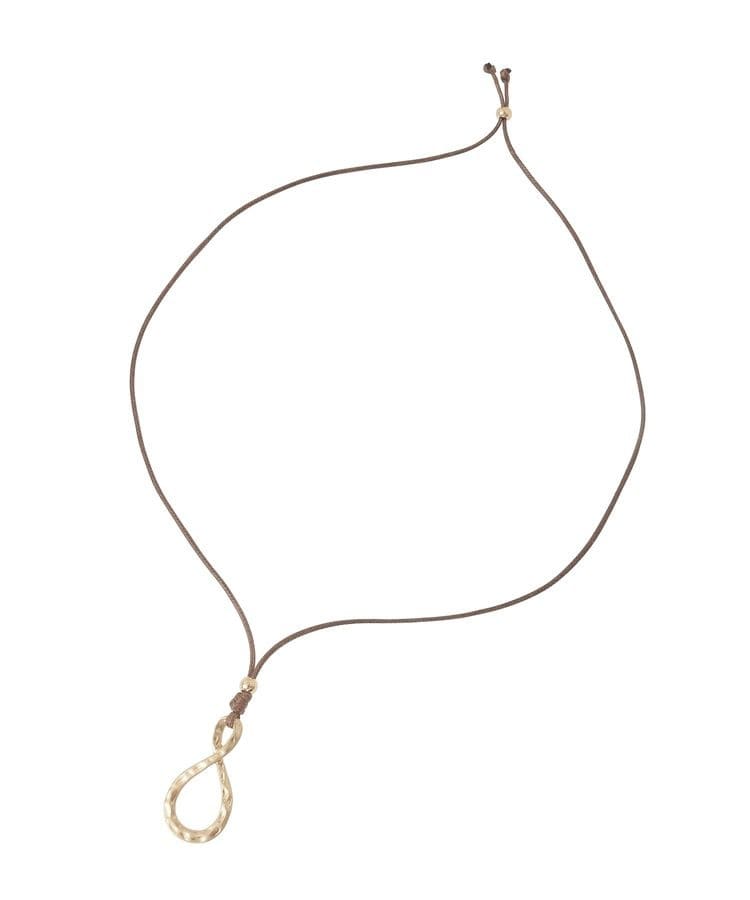 ニュアンスあるエイトモチーフのトップが目を惹くデザインネックレス。スライドボールを調節して、お好みの長さにできるのもポイントです。レザーライクなコードが着こなしをピリリと引き締め、こなれたスタイリングを後押し。カジュアルからきれいめまで幅広く合わせて頂けるアイテムです。※モデル着用画像は、光の当たり具合で色味が違って見える場合がございます。※お使いのモニター環境によって商品の色味が違って見える場合がございます。