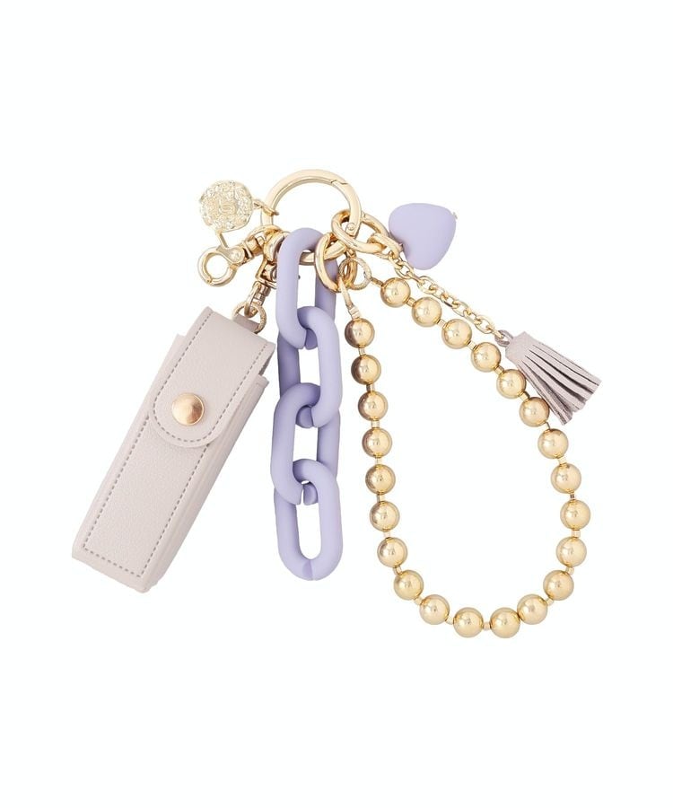 持ち歩きもおしゃれに叶える、機能美チャームバッグに付けるだけで、華やかさと実用性を同時にプラスできるデザインです。リップをすっきり収納できるケース付きなので、バッグの中を探す手間が減り、外出先での身だしなみ直しもスマートに行えます。マット素材のビッグチェーンに、ボールチェーンやフリンジ、ハートモチーフを組み合わせた立体感のある仕上がりで、さりげなく視線を集めます。上品さを保ちながら遊び心も感じられるため、シンプルなバッグのアクセントとして最適です。取り付けやすく、日常使いからお出かけまで幅広いシーンで活躍します。おしゃれと便利さの両方を大切にしたい方に寄り添うアイテムです。※モデル着用画像は、光の当たり具合で色味が違って見える場合がございます。※お使いのモニター環境によって商品の色味が違って見える場合がございます。