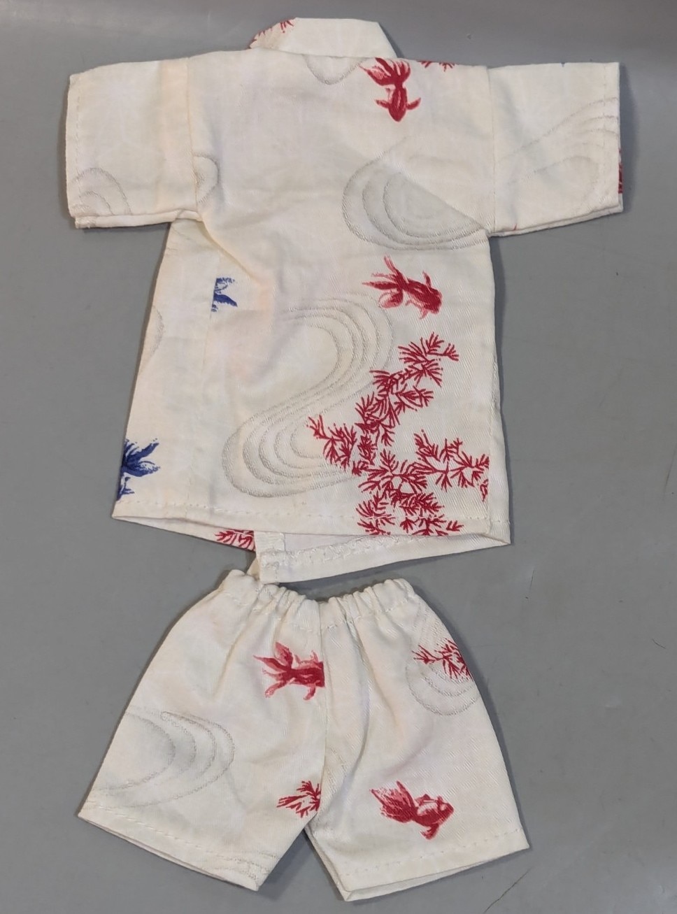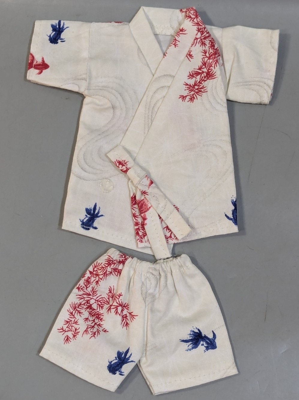 ドール衣装 30cmサイズ(幼SDなど) 甚平 和服 着物 白 金魚柄