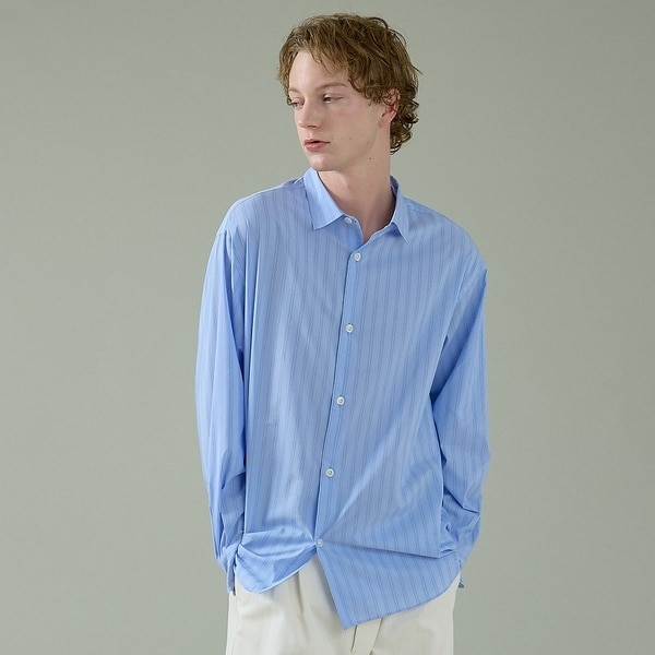 美品 エアリーバック ストライプ シャツ 38 Mサイズ 青 オーバーサイズ