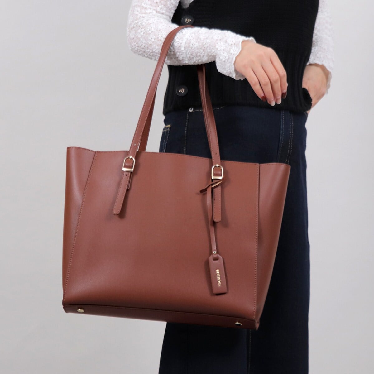 ビジネストートバッグ A4対応 通勤 就活 面接 黒 タッセル付き レディース PUレザー 内ポケット付き パソコンが入る大きめサイズ