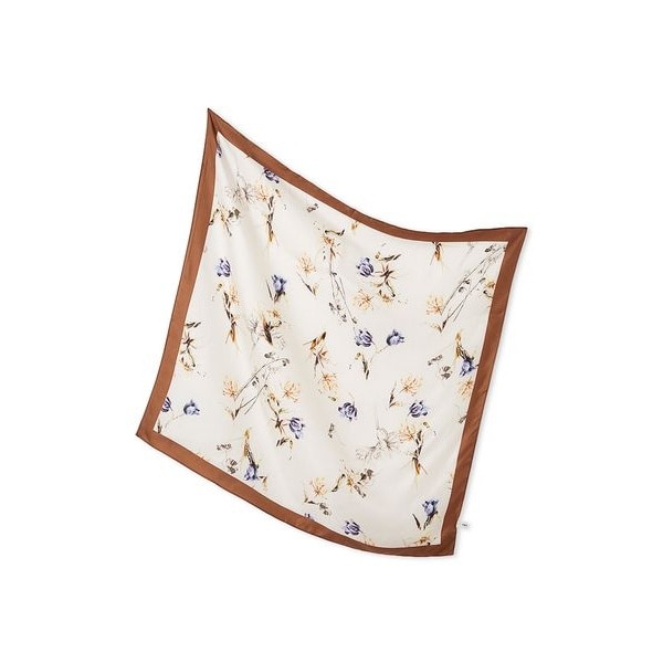上品な艶感のシルクツイル生地のスカーフにあしらったのは、洋服などに使用している洗練されたフラワープリント。