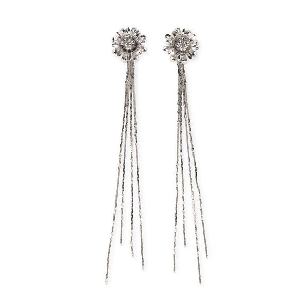 立体的なフラワーモチーフに取り外し可能なロングチェーンをあしらった、存在感たっぷりな2WAYピアス。