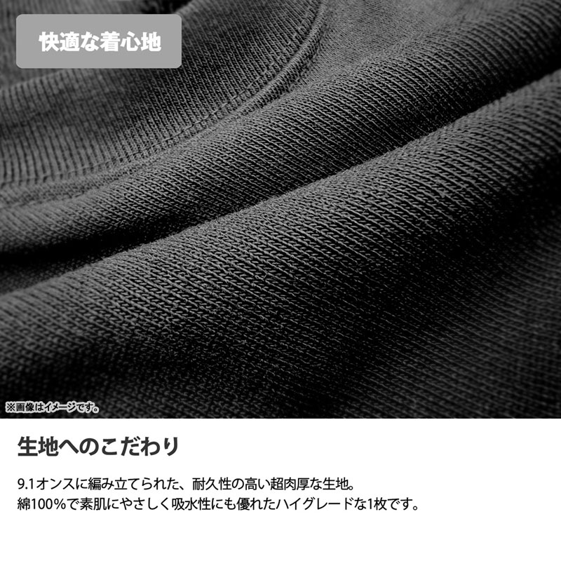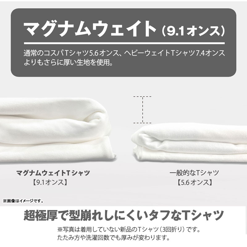 ・一般的なTシャツ5.6オンスよりも更に厚い9.1オンスの型崩れしにくいタフな生地。