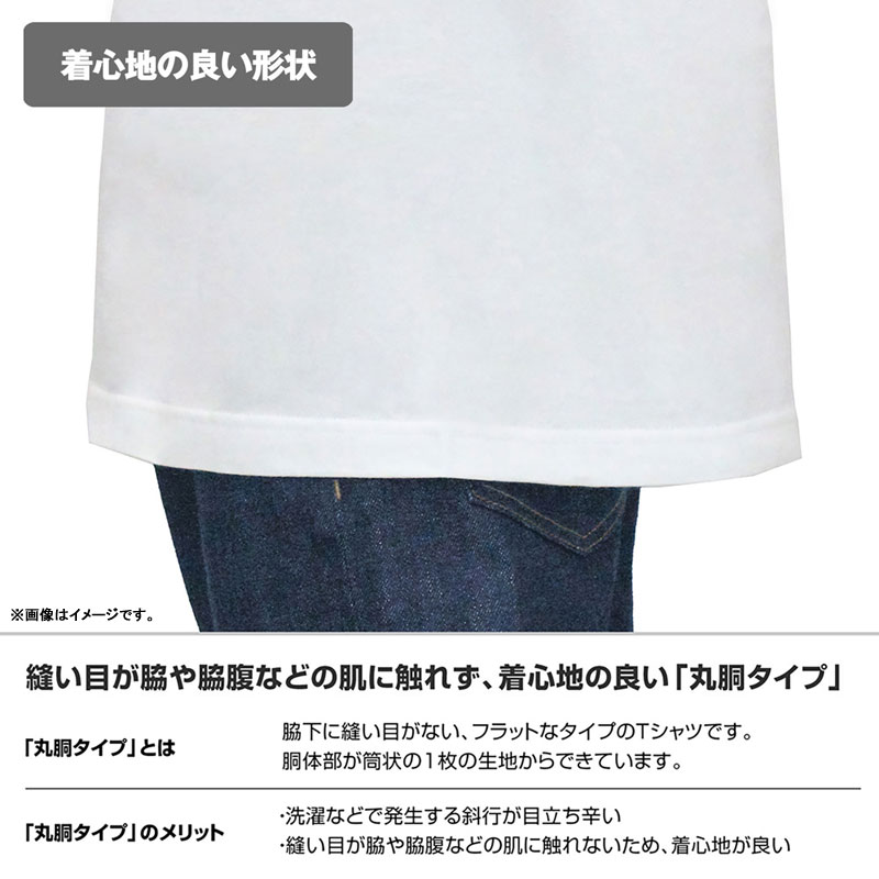 ・胴は脇下に縫い目のないフラットな「丸胴タイプ」を採用。洗濯による斜行(ねじれ)が起きにくく、快適な着心地が続きます。
