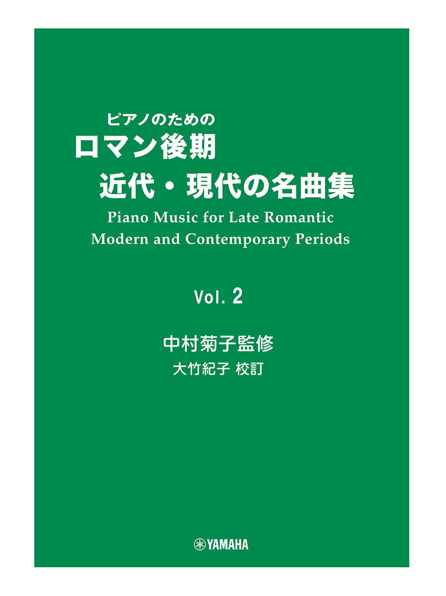 2巻にはロマン後期のアルカン、フォーレ、リスト、ドビュッシーなど、近代のバルトーク、サティ、ストラヴィンスキーなど、現代のオネゲル、コープランド、ヒナステラなどの名曲を収載。各曲、作曲したときの背景などの解説も掲載しています。ほかには無いピアノ楽譜集をぜひお楽しみください。※本書は「ピアノのためのロマン後期・近代・現代の名曲集 2」(GTP01082827)と同じ内容です。■収載曲 [全23曲を収載][1] 舟歌 Op.65-6 / C.V.アルカン歌の第3集 Op.65よりグレード: 上級[2] 無言歌 イ短調 Op.17-2 / G.フォーレ3つの無言歌 Op.17よりグレード: 上級[3] 小人の踊り / F.リスト2つの演奏会用エチュード よりグレード: 上級[4] アンダンテ / L.ヤナーチェク霧の中で よりグレード: 上級[5] 献呈 Op.26-1 / E.ショーソンいくつかの踊り Op.26よりグレード: 上級[6] サラバンド Op.26-2 / E.ショーソンいくつかの踊り Op.26 よりグレード: 上級[7] アナカプリの丘 / C.A.ドビュッシープレリュード集 第1集 よりグレード: 上級[8] 詩曲 Op.69-1 / A.N.スクリャビン2つの詩曲 Op.69 よりグレード: 上級[9] 詩曲 Op.69-2 / A.N.スクリャビン2つの詩曲 Op.69 よりグレード: 上級[10] ボロディン風に / M.ラヴェルグレード: 上級[11] シャブリエ風に / M.ラヴェルグレード: 上級[12] ソナチネ 第1楽章 バグパイプ吹き/第2楽章 熊のおどり/第3楽章 終曲 / B.バルトークグレード: 上級[13] ジムノペディ 第1番 / E.サティグレード: 上級[14] ソナタ(1924年作)より 第1楽章 / I.F.ストラヴィンスキーグレード: 上級[15] 子供のため小品 / A.ヴェーベルングレード: 上級[16] 白い孔雀 Op.7-1 / C.T.グリフィス4つのローマのスケッチ Op.7よりグレード: 上級[17] アクア・パオロの噴水 Op.7-3 / C.T.グリフィス4つのローマのスケッチ よりグレード: 上級[18] せき立てるアレグロ Op.17-3 / S.プロコフィエフ風刺(サルカズム)Op.17よりグレード: 上級[19] プレリュード 第1番 変ロ長調 / G.ガーシュウィングレード: 上級[20] ラヴェル賛歌 / A.オネゲル3つの小品 よりグレード: 上級[21] インテルメッツォ 変イ長調 / F.プーランクグレード: 上級[22] こっけいなスケルツォ‘猫とねずみ’ / A.コープランドグレード: 上級[23] クレオール舞曲の組曲 Op.15 / A.ヒナステラグレード: 上級