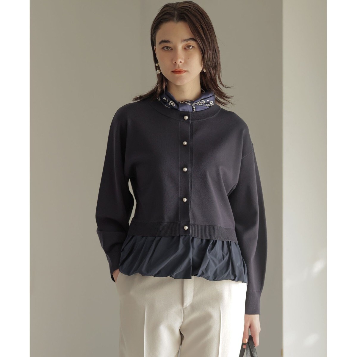 ■デザイン・裾に異素材を使ったバルーン仕様が目を惹くニットカーディガンは、前後着用可能な2WAY仕様です。・シンプルなニットカーデに立体感のあるバルーンシルエットを組み合わせることで女性らしさを演出。・絶妙なボリューム感がスタイリングに洗練された大人の華やかさを与えてくれます。・体のラインが出にくいルーズフィットなシルエットで、裾周りの収まりがよい長すぎない着丈が、どんなボトムとも合わせやすいバランスに仕上がっています。