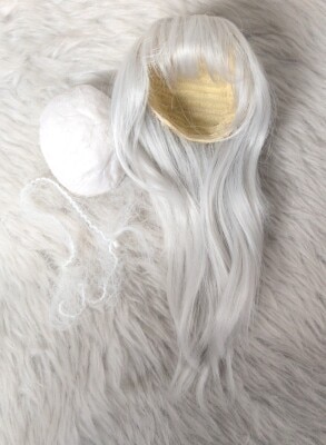 中古ドールウィッグ MSDサイズ ストレートロング ホワイト×ブルー