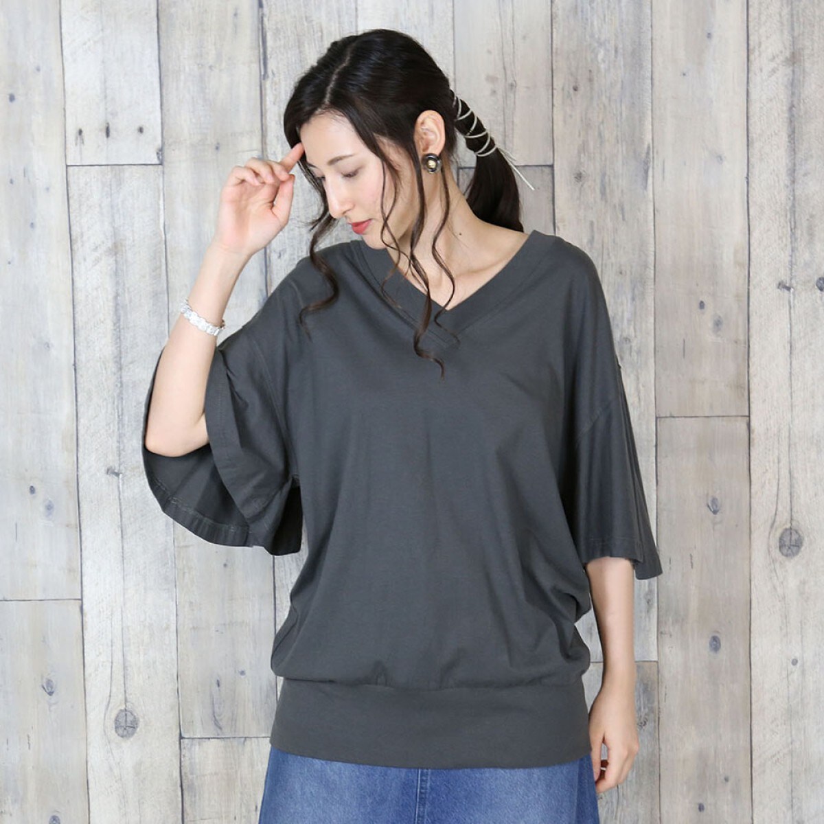 Vネックが女性らしくエレガントに。