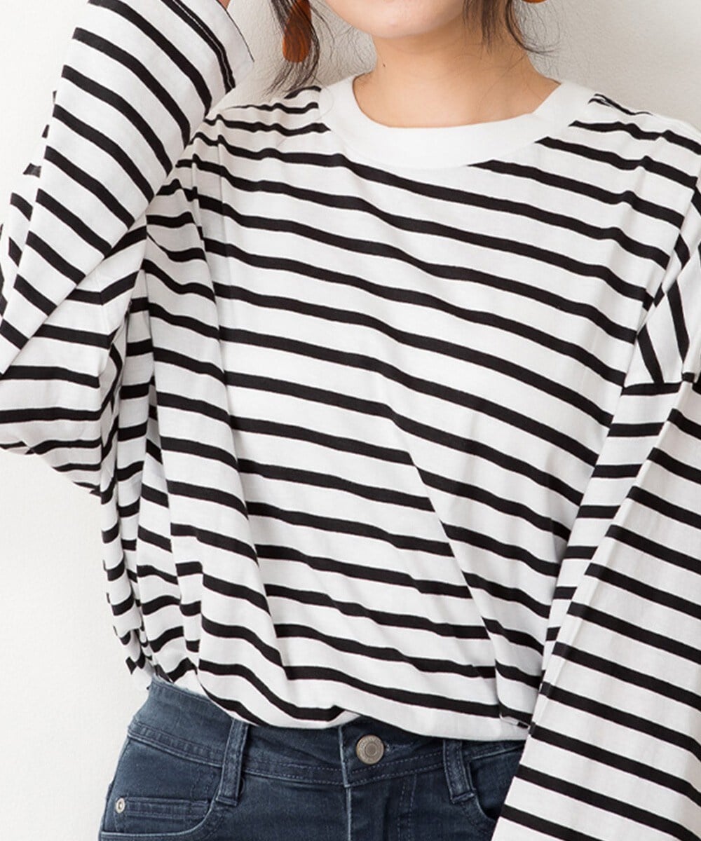 BIGシルエットのボーダーロングTシャツ。