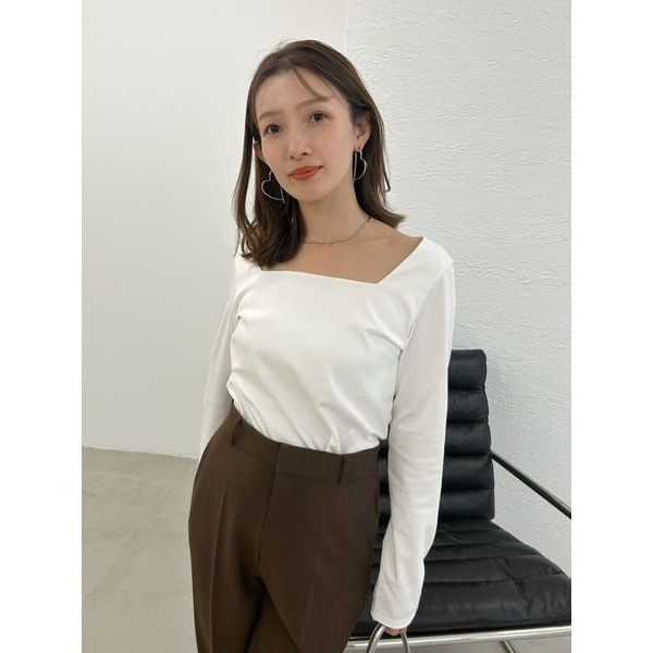 スクエアネックのTシャツは、シンプルながらもトレンドを程よく取り入れた1枚。