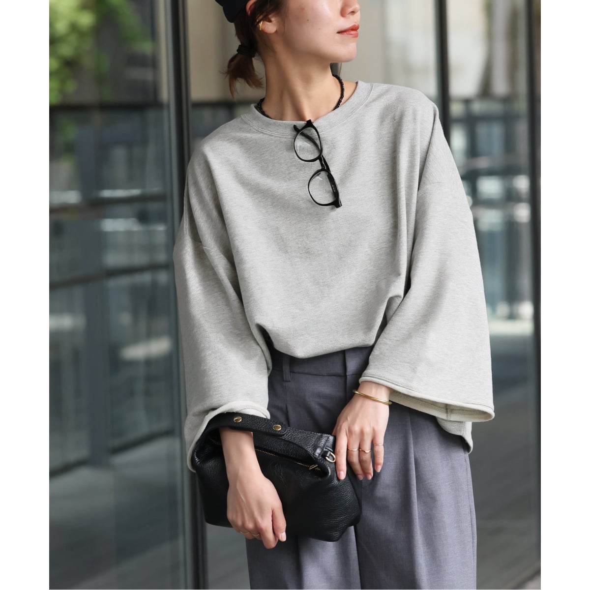 カットオフしたワイドスリーブとルーズなシルエットの身幅で