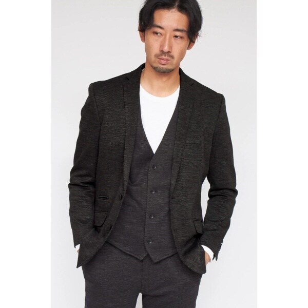 カジュアルながらきっちりとした、テーラードイメージを併せ持つデザイニングになっており、ラペル幅も細く、シャープでスタイリッシュさを演出。