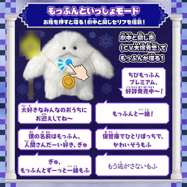 〈もっふんといっしょモード〉では、「もっふん」のお腹を押すと劇中と同じセリフと声(CV:大塚芳忠)を聞いて遊べます。