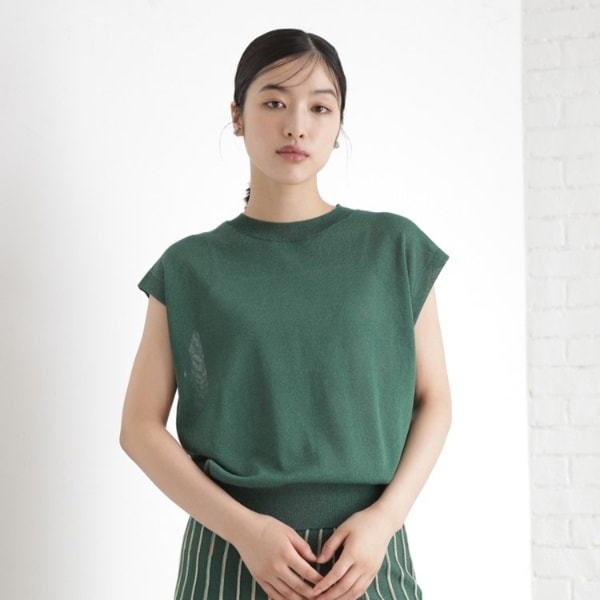 このニットは、同素材のニットスカート040‐73002(ラメシアーストライプニット)とのセットアップでの着こなしがおすすめです。