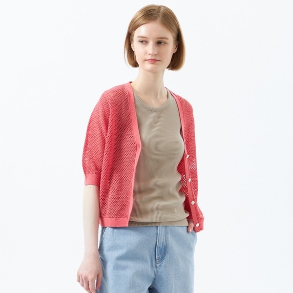 [洗える]メッシュニットカーディガン
