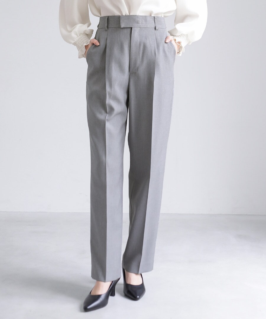 美脚 ハイウエスト ワイドパンツ 通年 細見え パンツ オフィス カジュアル S