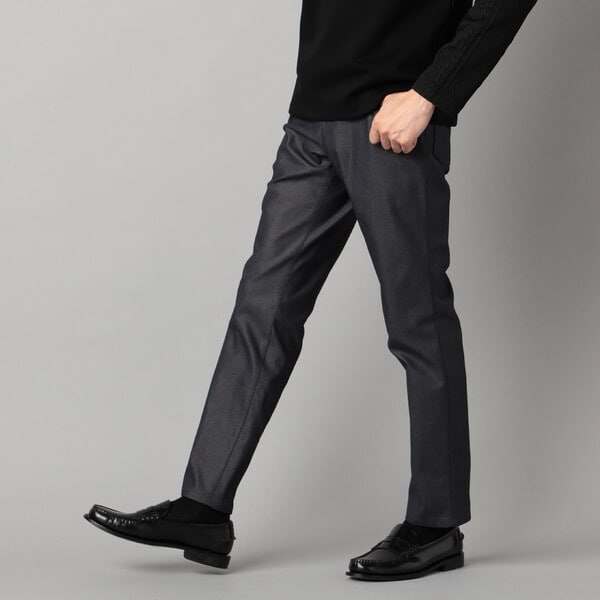 裾に向けてラインを絞ったスリムテーパードシルエットの5ポケットパンツです。