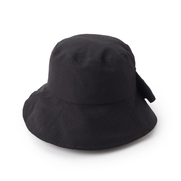 大きなリボンが特徴的なデザインのワイドブリムハット。