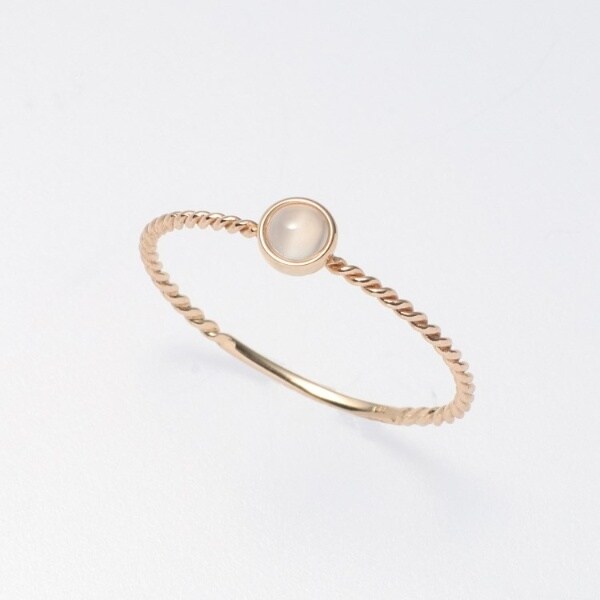 肌なじみの良い石のカラーと寄り線のリングが放つ煌めきが、手元を優しく包みながら、そっと華やぎをもたらします。