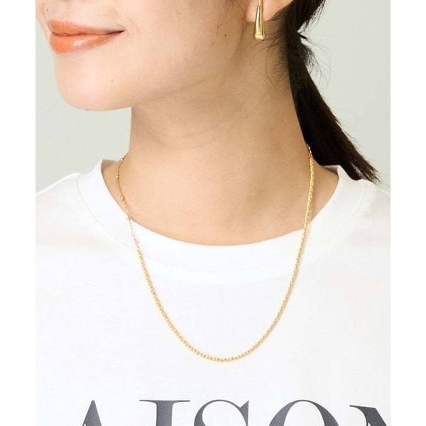 左右異なる二種類のチェーンが一本になったシンプルなチェーンネックレス。
