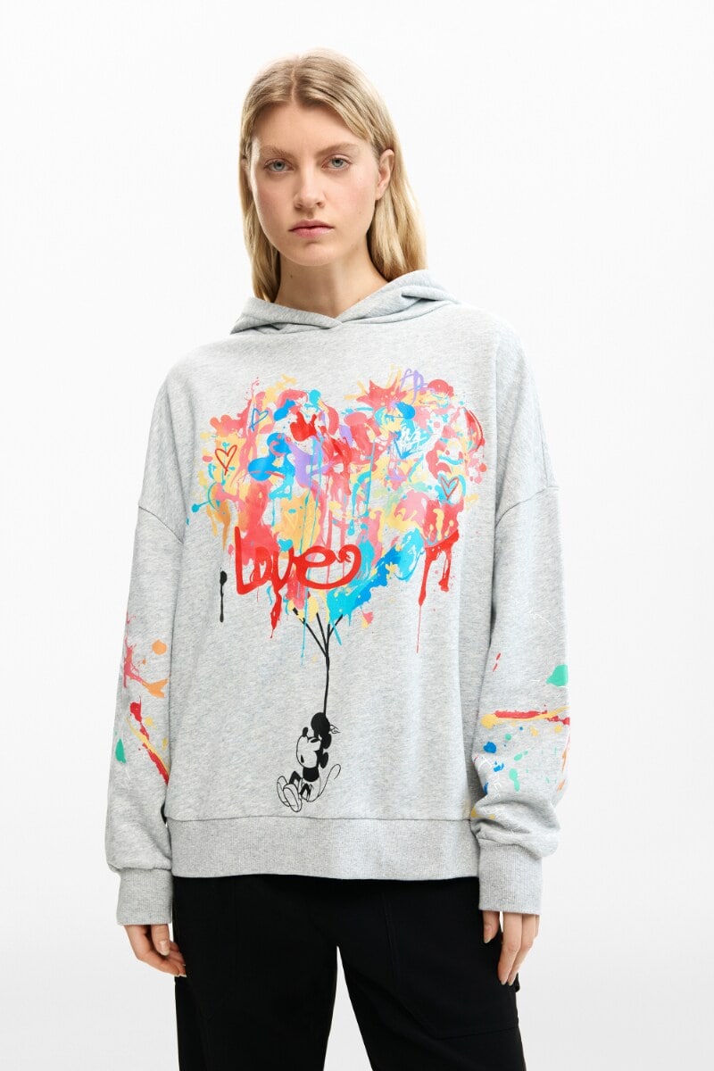 ディズニーキャラクターのアート風プリントが施された、レギュラーフィットのフード付きスウェットシャツ。