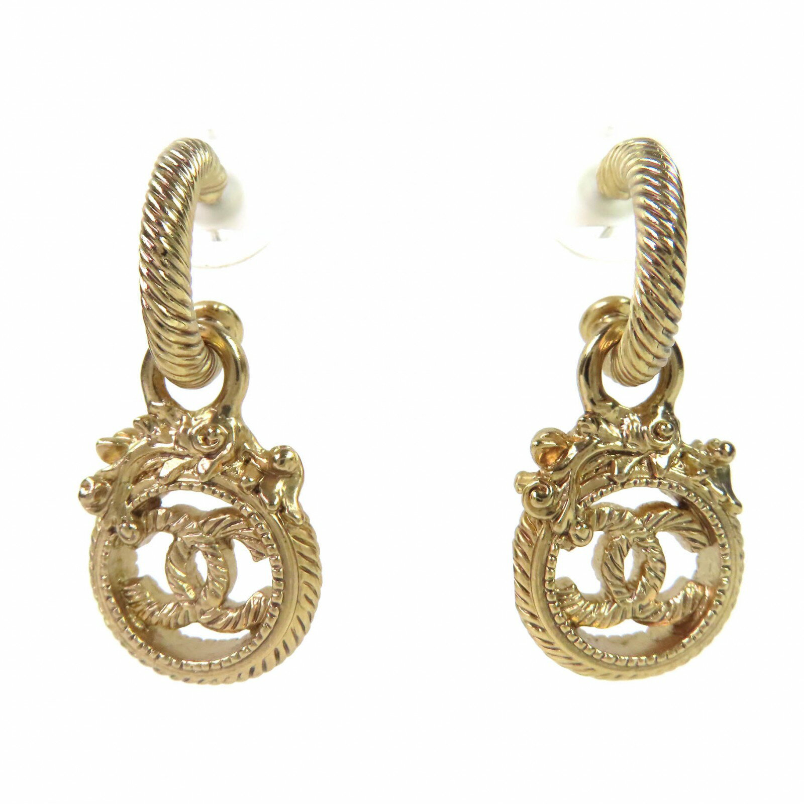 【ヴィンテージ】極美品 CHANEL シャネル ココマーク スイング ピアス ゴールド 99A刻 1999年製 オールドシャネル【送料無料】