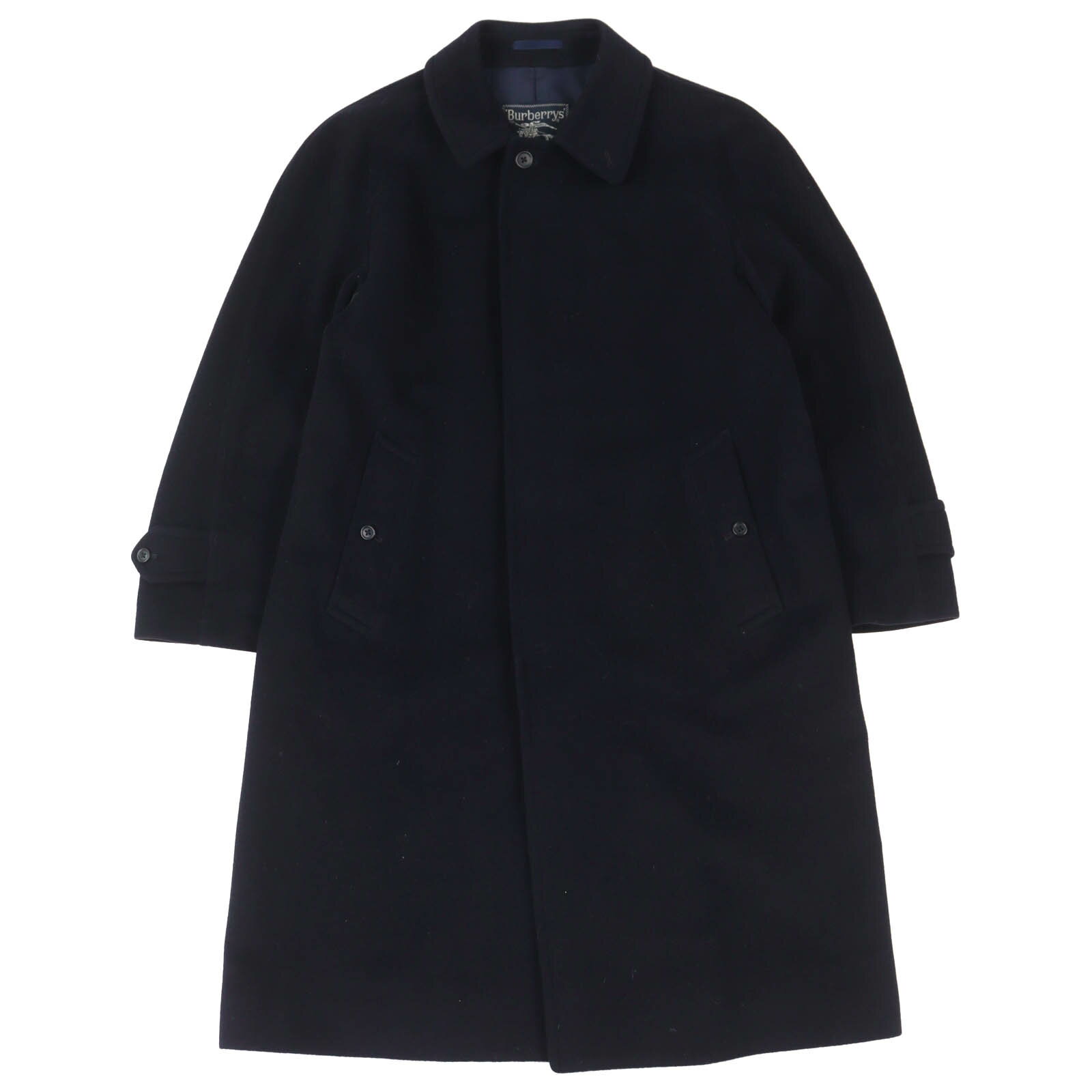 美品△Burberrys バーバリー ヴィンテージ ウール カシミヤ ステンカラーコート ネイビー 約Lサイズ相当 イングランド製 メンズ オススメ◎【中古】