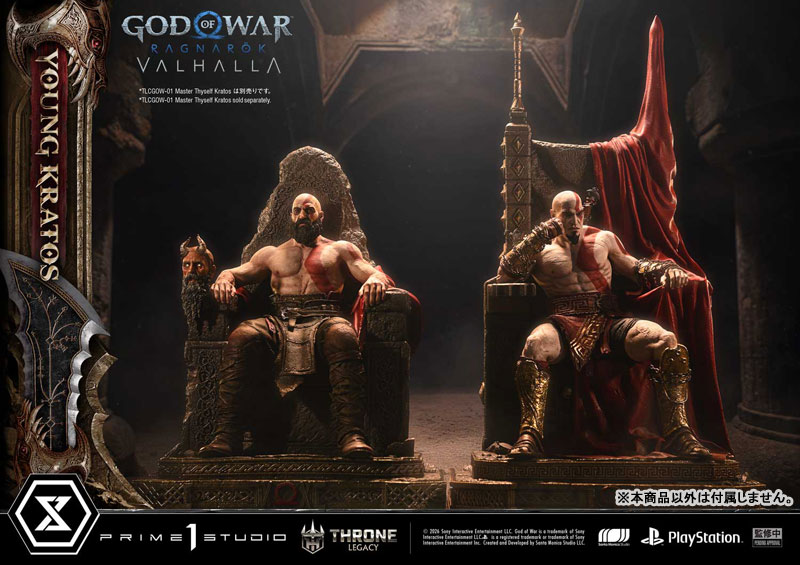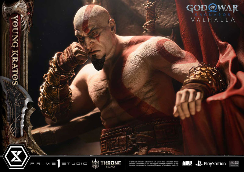 北欧の神々との戦いを終え、アトレウスの旅立ちを見送ったクレイトス。かつてない経験を重ねた彼が過去と向き合う、DLC『ゴッド・オブ・ウォー ラグナロク:ヴァルハラ』の一幕をモチーフにしたスタチューです。破壊を繰り返し、災厄そのものだったスパルタの亡霊――若き日の姿を、立体表現を追求できる1/3スケールで玉座に投影しました。