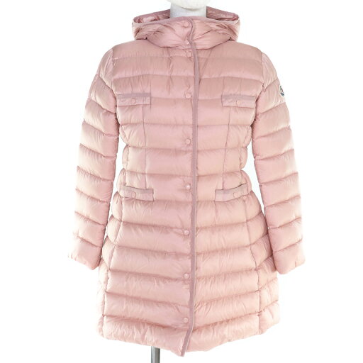 未使用品☆MONCLER モンクレール LICHEN ロゴワッペン・フード付 膝丈 ナイロンジャケット オレンジ 1 正規品 レディース【中古】