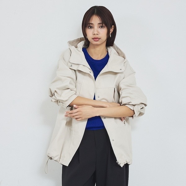 ・裾のドローコードで、スタイリングに合わせてシルエット調整可能