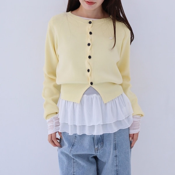 ・フロントのクロスボタンがアクセントのカーディガン