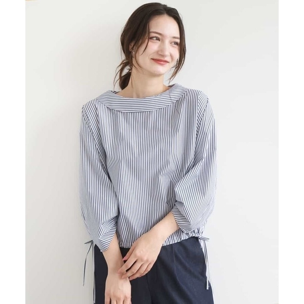 アメリカンホリック ギャザースリーブバンドカラーブラウス ブルー系 シャツ