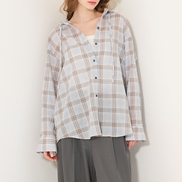 シアーチェック フードシャツ 羽織り ゆったり レディース シャツ ブラウス