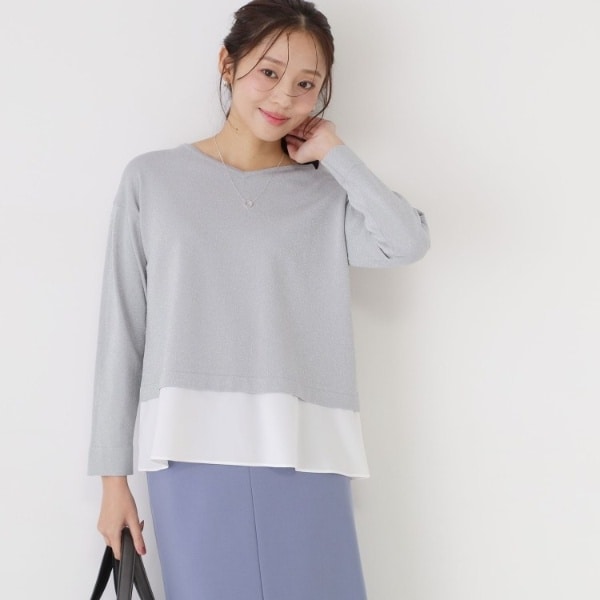 ハイゲージのラメニットに合繊生地を裾ドッキングしたブラウスレイヤード風プルオーバーです。