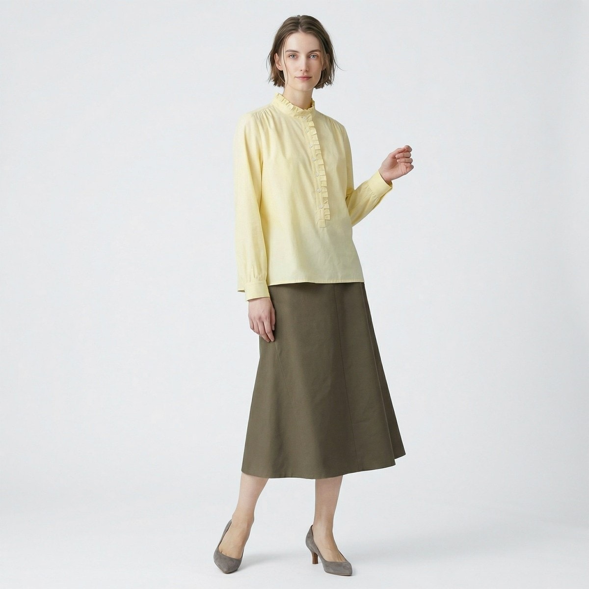 ハリのある肉厚なコットンチノ素材で仕立てた、フレアシルエットのスカートです。落ち着きのある膝下丈のスカートは、大人の女性におすすめ。コーディネート力に優れた、ベーシックなカラーがラインナップしています。プリントやチェック柄のトップス・アクセサリーともコーディネートをお楽しみいただけます。